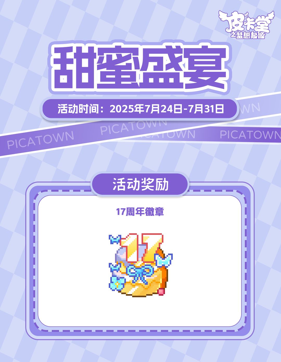 -【甜蜜盛宴】今天我们之所以相聚在这里,是为了一起庆祝皮卡堂页游十七周岁生日!参与活动可获得17周年徽章,皮卡亲们快来一起吃蛋糕吧!