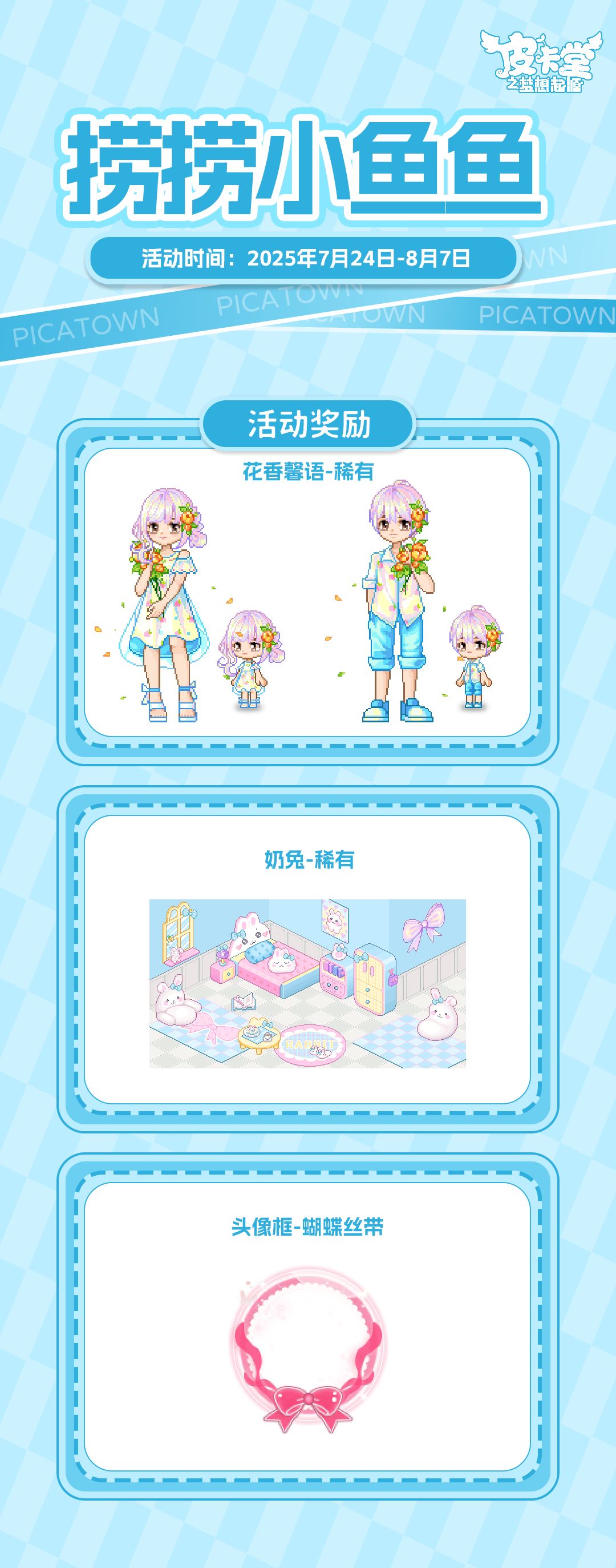 -【捞捞小鱼鱼】活动限时上线!参与将有机会获得套系家具「奶兔」、稀有套装「花香馨语」、头像框「蝴蝶丝带」!