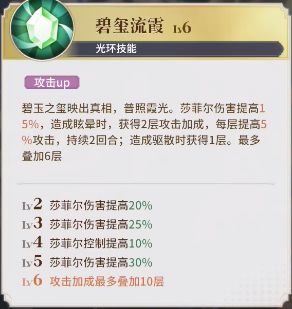 莎皇驱散和眩晕能给自己加攻击,最高达到10层有50%,这个技能奠定了她的输出必然不会太低,甚至可以承担副C的重任。