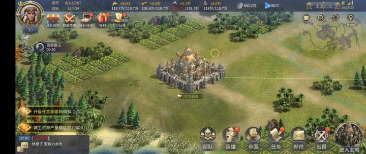 - 前期:优先升级主城至3级,解锁更多建筑槽位。同步提升农田、伐木场、采石场(资源生产)和兵营、研究所(军事能力) 。