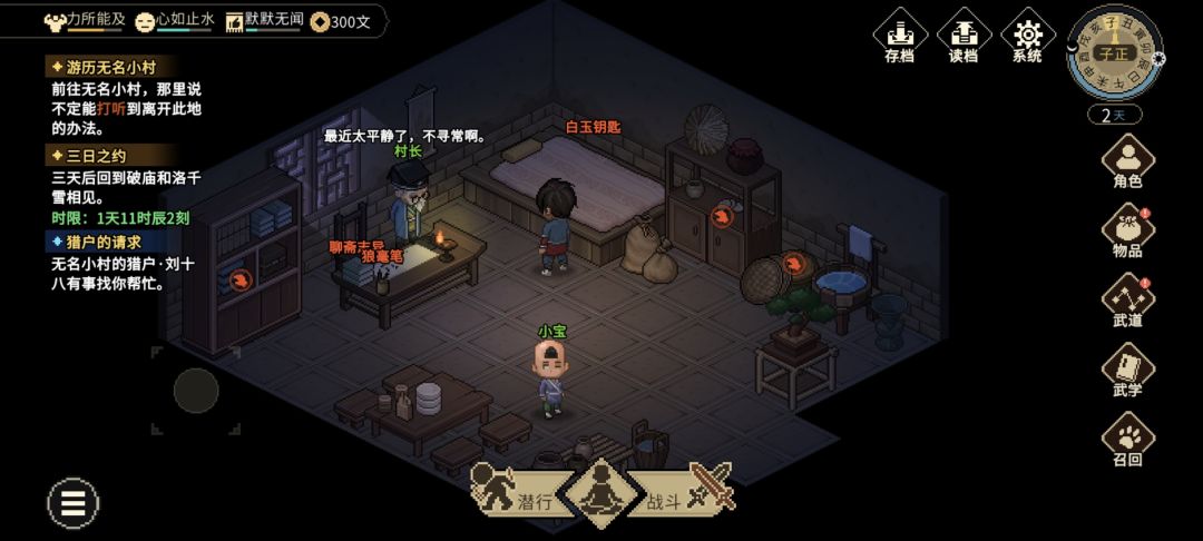 无名地区-无名小村-村长家-[人物:村长];村长晚上在家,白天有概率在村子里面闲逛。