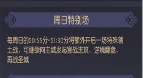特别注意:每周日会有一场额外特需领土战宣领土机会。