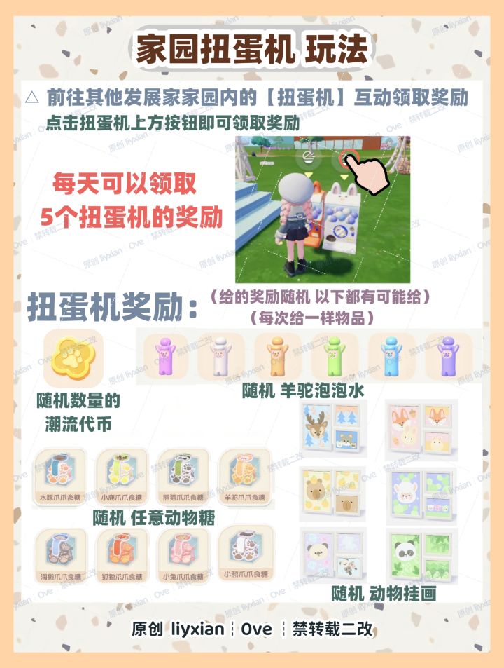 动物新邻季活动期间,每天我们可以前往其他玩家家园内的扭蛋机前,进行交互,可以获得随机潮流季物品奖励。