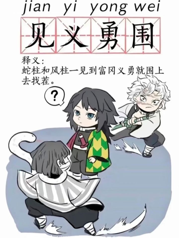 见义勇围:蛇柱和风柱一见到富冈义勇就围上去找茬(不是这对吗哈哈哈哈哈)