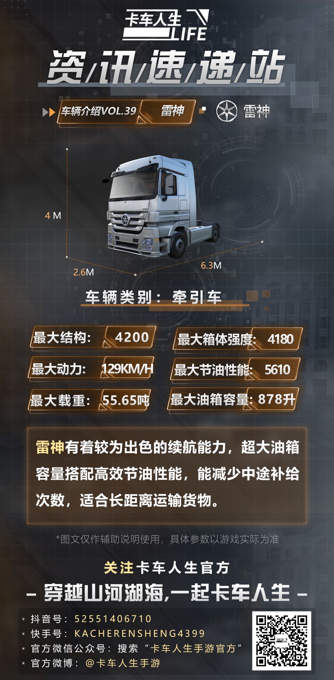 更多内容爆料敬请关注小卡的后续资讯,公众号独家关注礼包上新,关注官方公众号【卡车人生手游官方】,输入口令【卡友相聚】即可获得全新独家关注礼包!(已领取过的卡友无法重复领取)