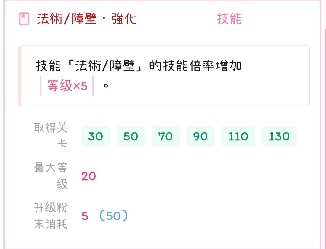 咒法调率(点4/6/10):获得调率点数,对3阶内的魔法技能增加额外的属性(一个技能附加一种额外属性需要1调率点,附加第二种需要4调率点,所以4/6/10级分别可以对1/2/3个技能进行附加属性)
