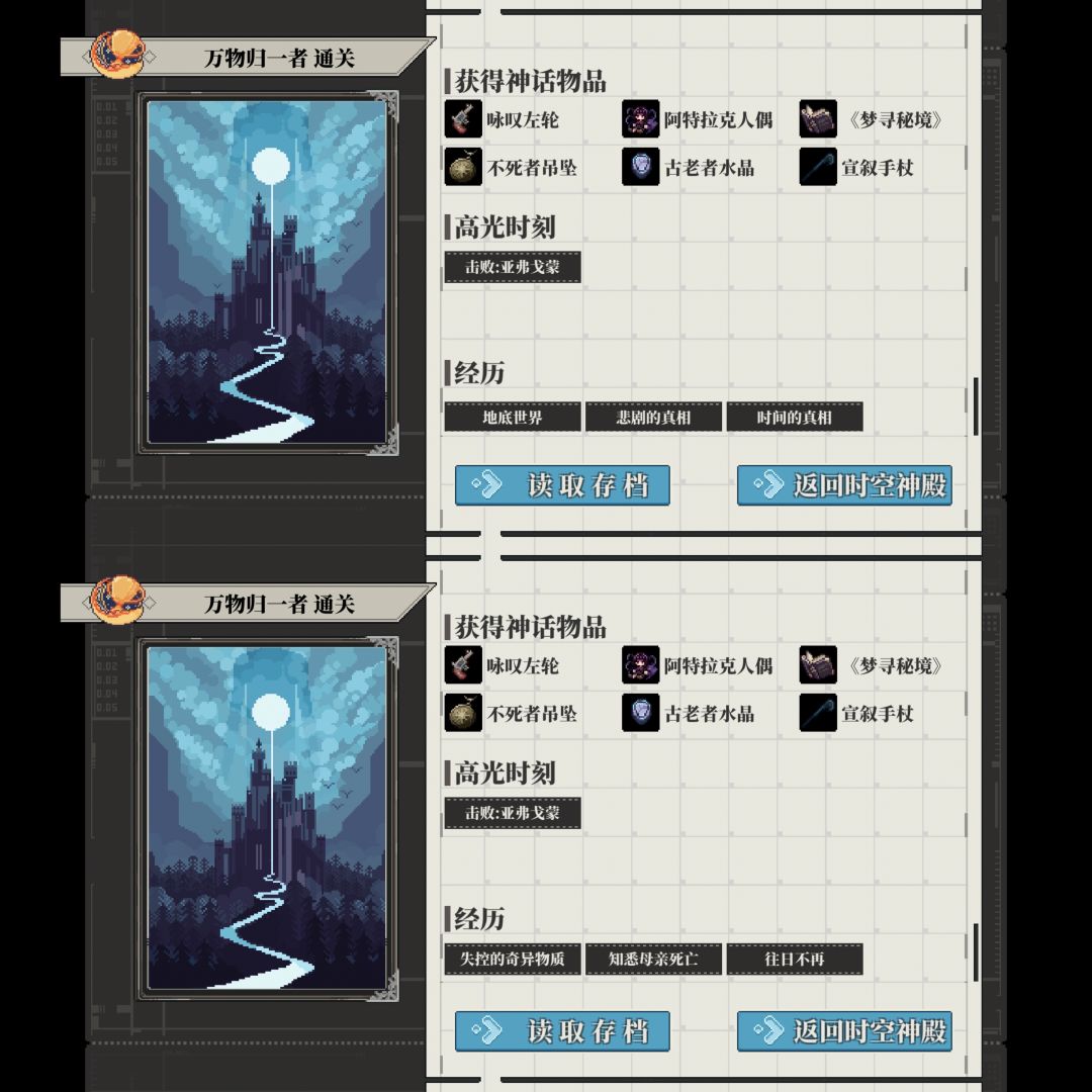 结局展示按时间顺序排列,附加最终全传说物品+全经历