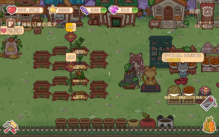 如果没有完成猫奶奶杂货屋的委托任务,可以空三个盆子种委托蔬菜。