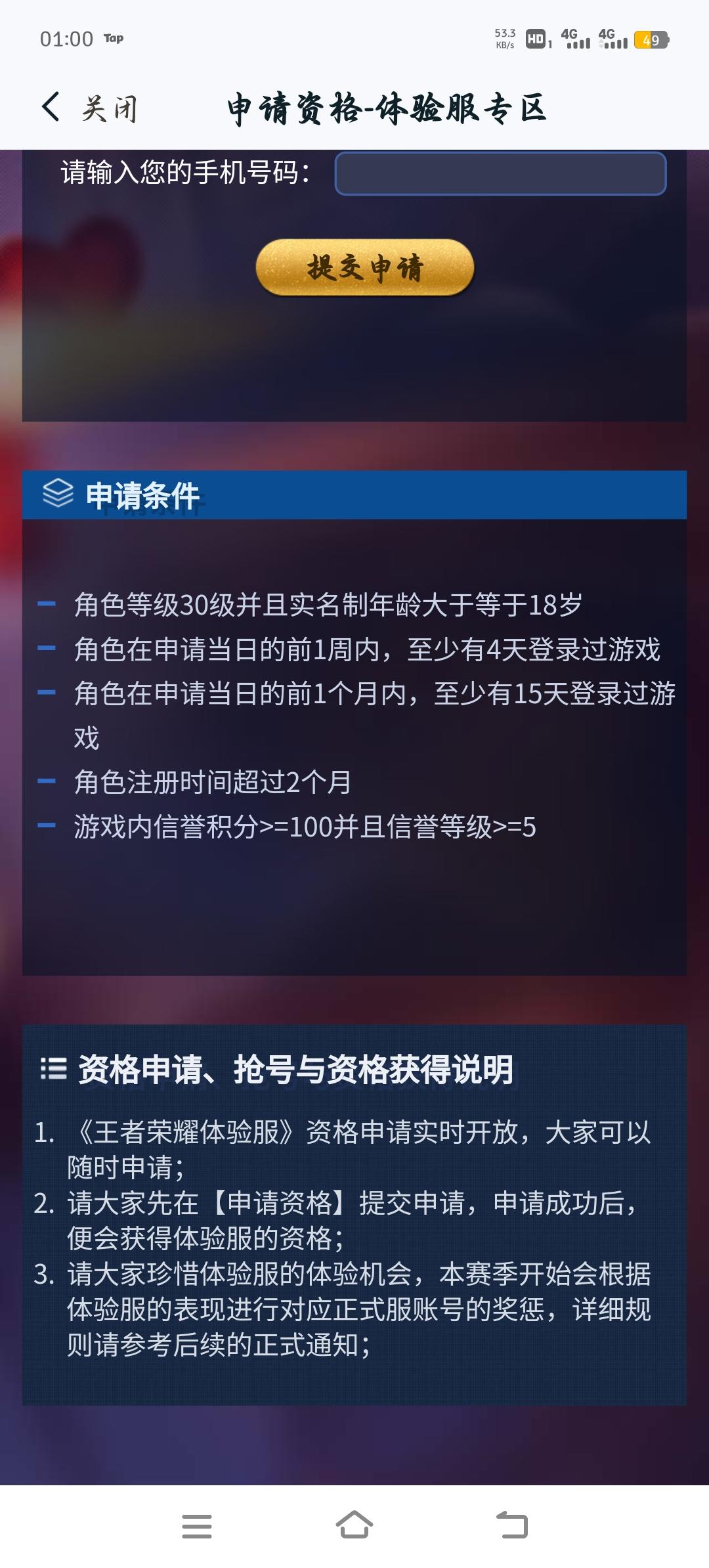 体验服资格申请