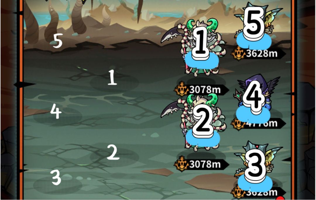 - 己方的站位分布我们表示为12345,而敌方的顺序标示为对应的12345!