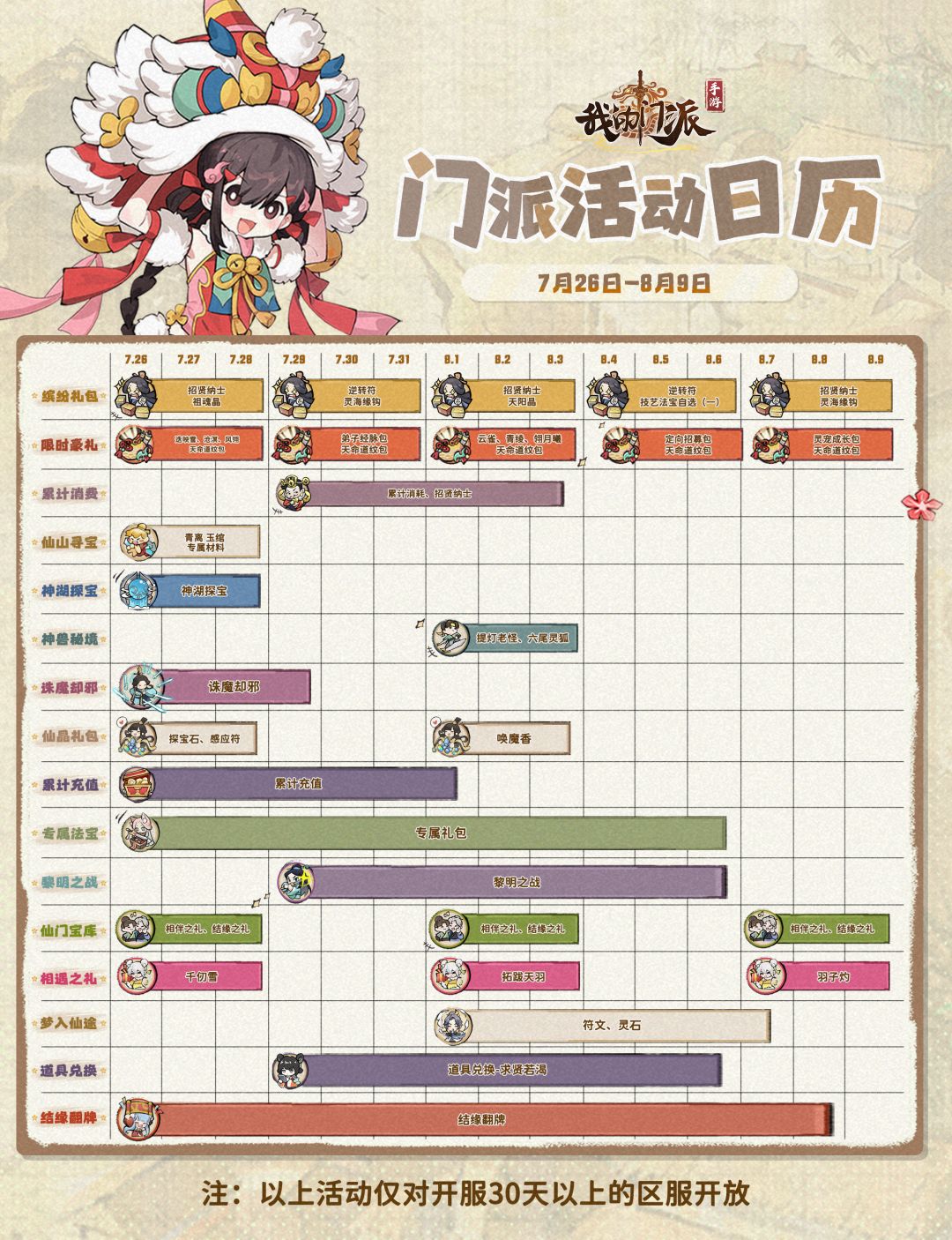 诸位掌门好呀!小师妹带来了本次的活动日历,快来一起看看吧——
