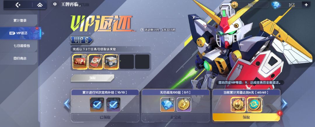 符合条件的指挥官在活动期间内创建的角色将可以参与新服专属【王牌归来】活动,完成活动任务即可获取大量奖励并返还在其他服务器的最高VIP等级。