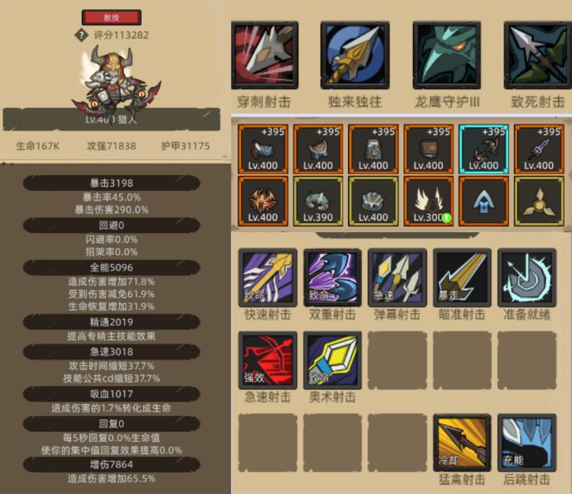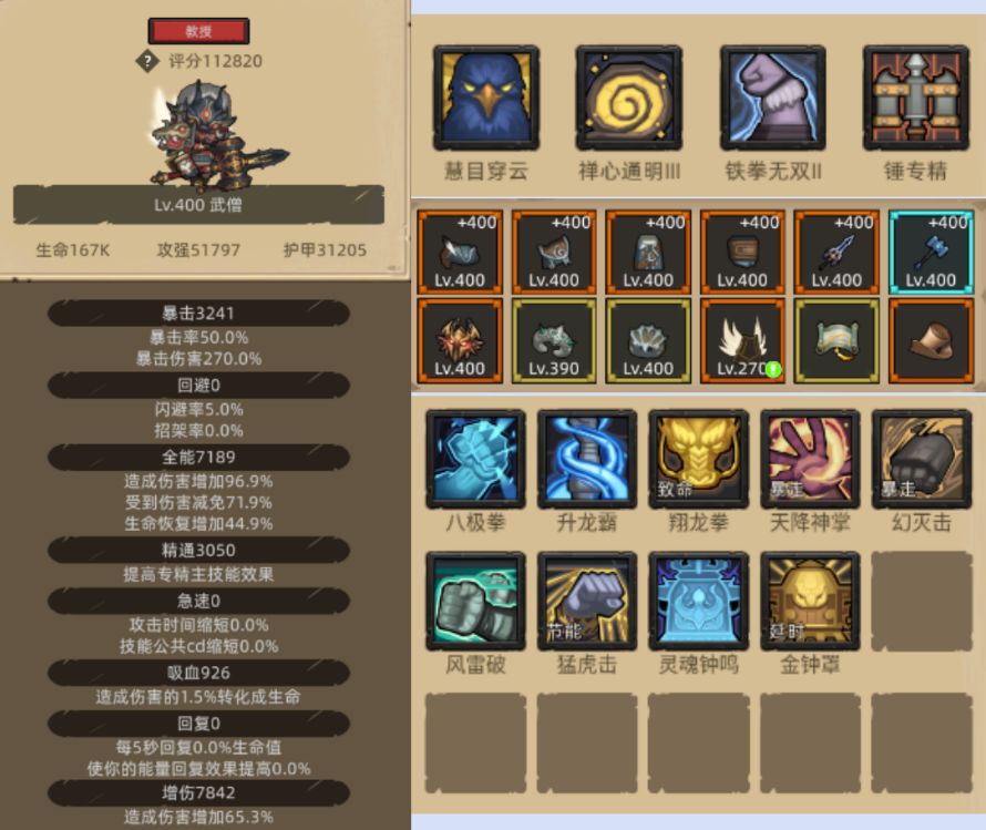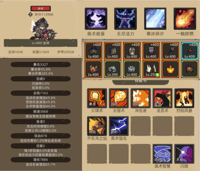 接下来分享一下400级高分速通的挂机配置和演示视频: