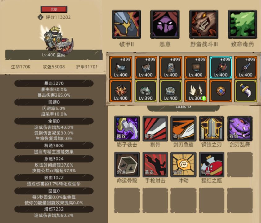 满暴--3600全能--6400急速--1000吸血--7800增伤的情况(11W分为例,实战挂机收益比0急速仅快3秒以内)