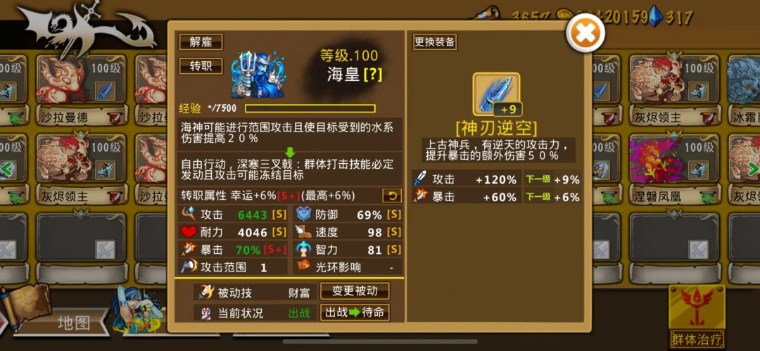 5凤凰3冰龙2湖仙3北风2海神7火灵11火神1绿鬼1团长2重盾1雅典娜3赫卡+2个刷钻的,具体见我英雄配图,其中我的蓝刀海神和阿卡是刷钻的。