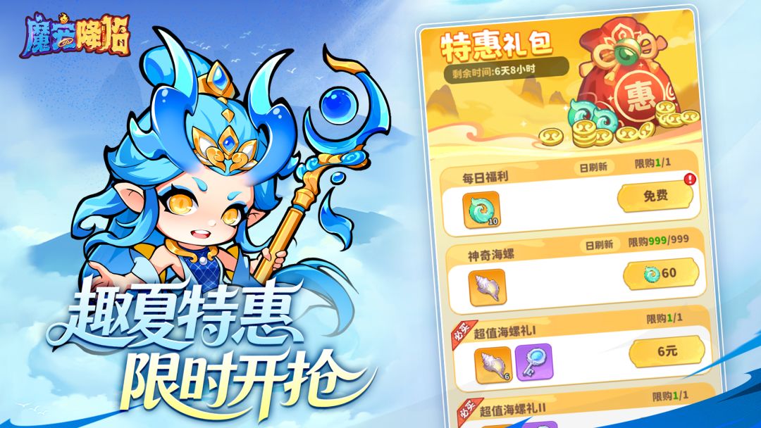 五、趣夏特惠 限时开抢限时趣夏商城已开启,超值海螺等特惠礼包供天命人挑选,更有仙玉好礼每日直接获取,速速来抢夏日专属豪礼!