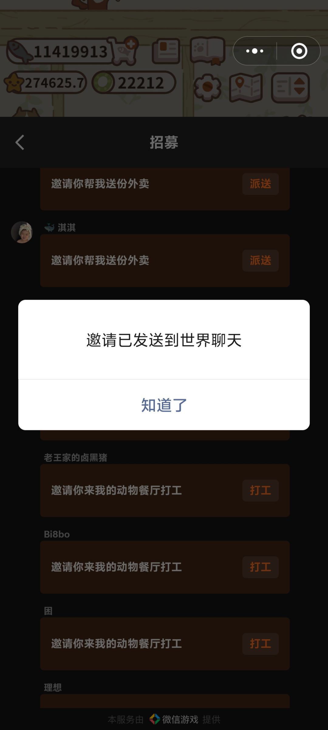 我知道有世界频道,但之前进世界频道都得依靠自助餐厅和外卖,要先将招工邀请发送到世界频道,才能进到世界频道。