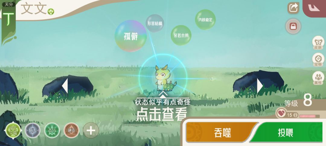 文文是升级进化,如图所示到达八级后点击灵兽即可进化。