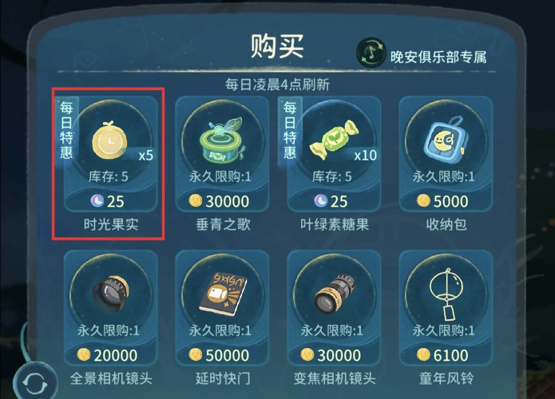 1.早上还是一样,先做每日任务把月亮币拿了,然后去维娜奇那里看有没有刷星星(这里我没有刷就没有截图了),然后买完每日限购的时光果实。