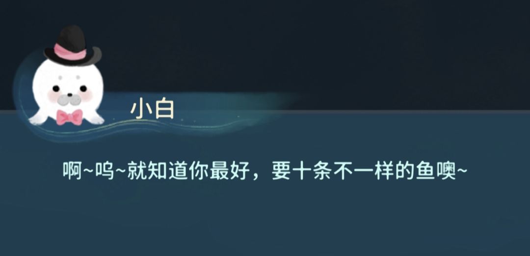9.开启月牙湖底,需要和小白对话后完成他的两个任务,第一,需要给小白10条不同的鱼,小白会去水底开潜艇上来,第二,小白在开潜艇上来的途中把潜艇撞坏了,需要玩家贡献材料维修,修复后月牙湖将会多一个小潜艇,也就是前往月牙湖底的快捷通道。