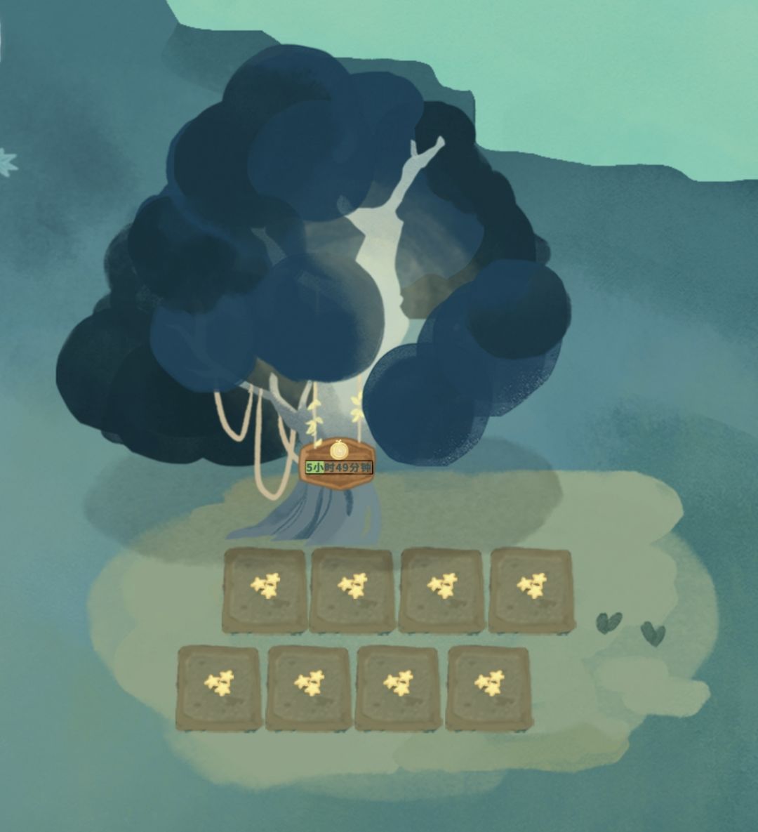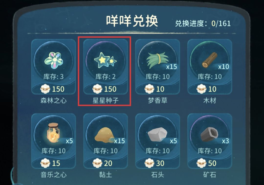 4.进入第三章,用准备好的300咩咩换2个星星种子,并种到时光树下,至此8个星星种子就集齐了,早上就不用花月亮币再买时光果实了,后续就是攒星星和材料升级时光树就行了。