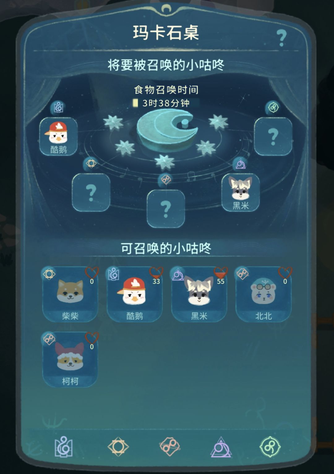 7.鸡哥的第二个任务需要五个不同音卡的小咕咚演奏3次,免费小咕咚需要在玛卡雕像那里放置食物,凑齐五个音卡的小咕咚估计需要好几天。