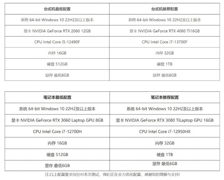 官方也是发布了先锋测试的配置要求。