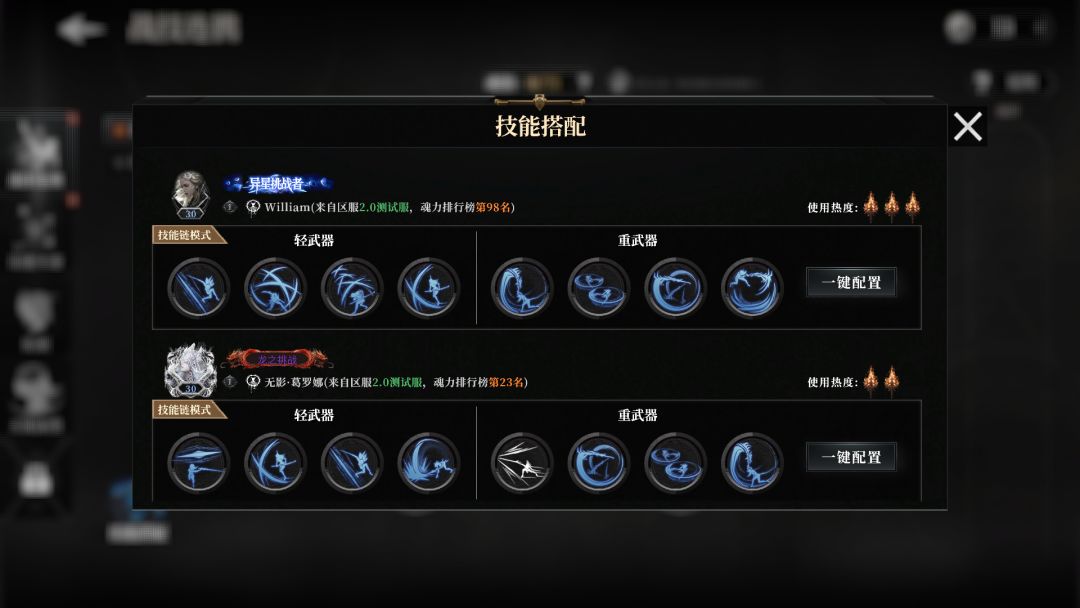 技能面板新增职业技能一键更换功能,继承者们可套用系统或其他大神的技能搭配。