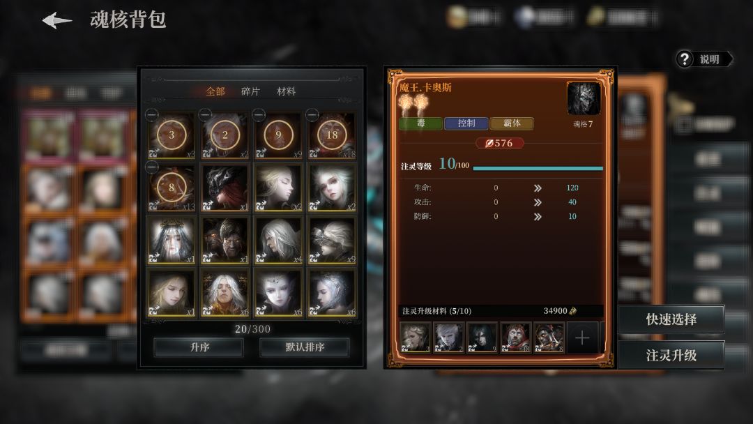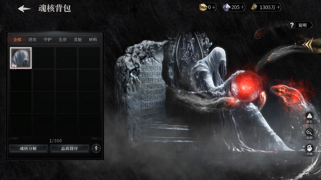 魂核新增注灵成长玩法,注灵消耗魂核碎片和注灵辉石。魂核分解新增可选择还原为碎片用于注灵升级,也可分解为古魂碎片用户魂核兑换。