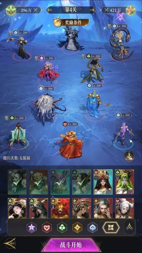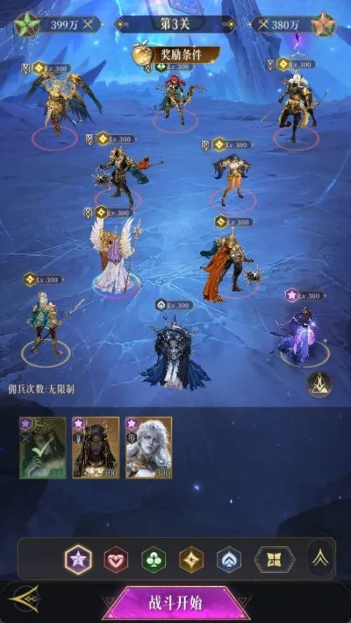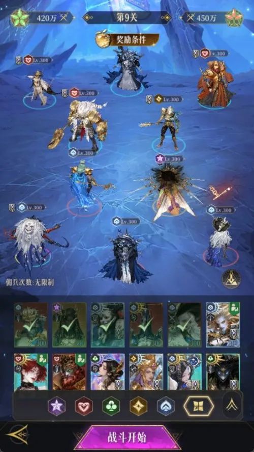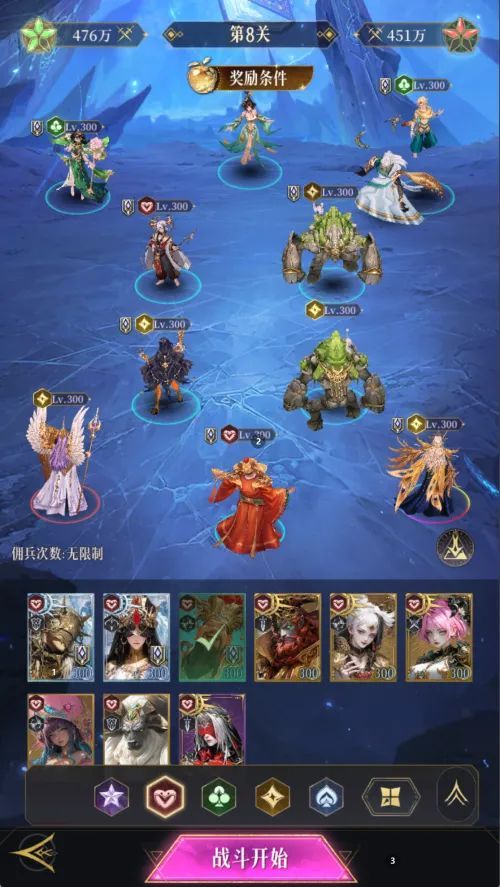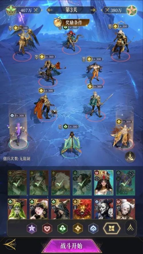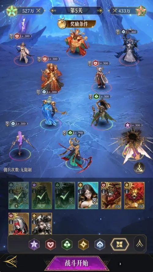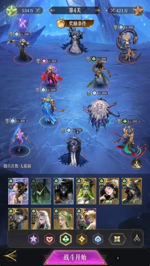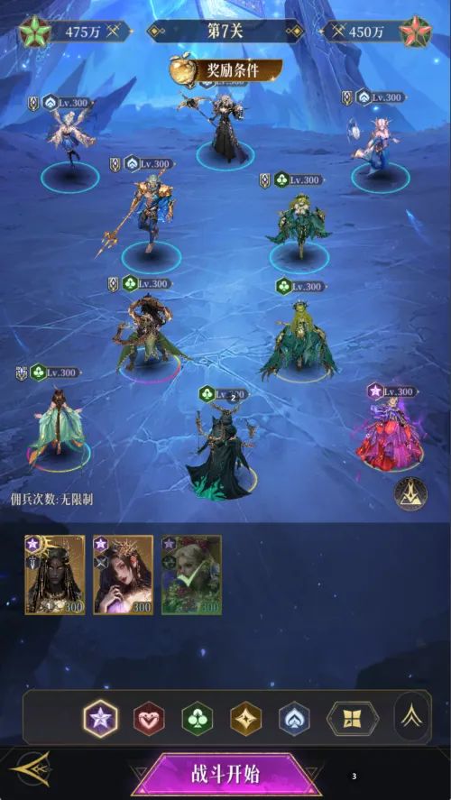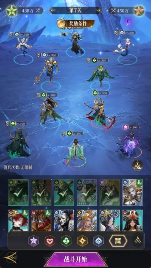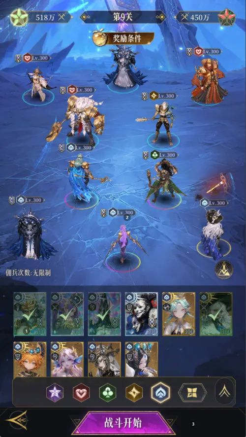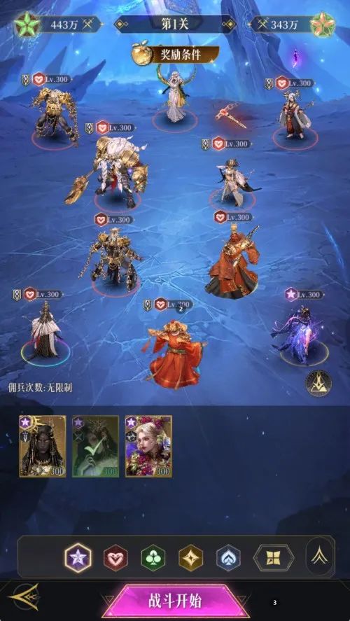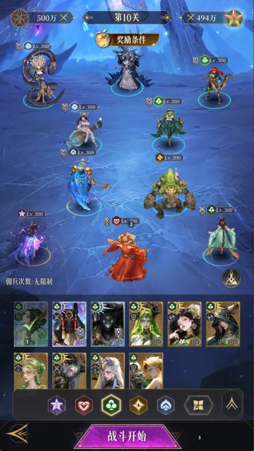 前10关每关有3个通关条件,其中一条为固定的“通关”,如果阵容或卡牌练度不足无法一次性达成满星,可在通关的前提下每次满足一个条件,多打几次凑满星。这个小技巧在后期非常实用~
