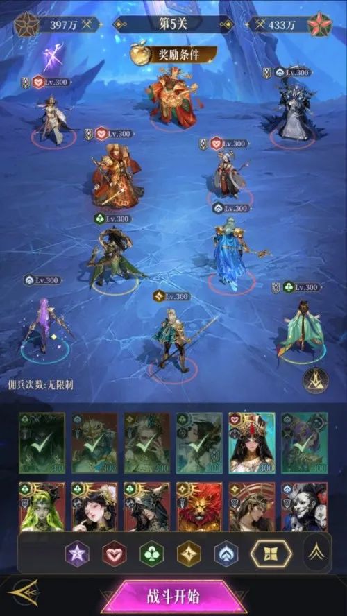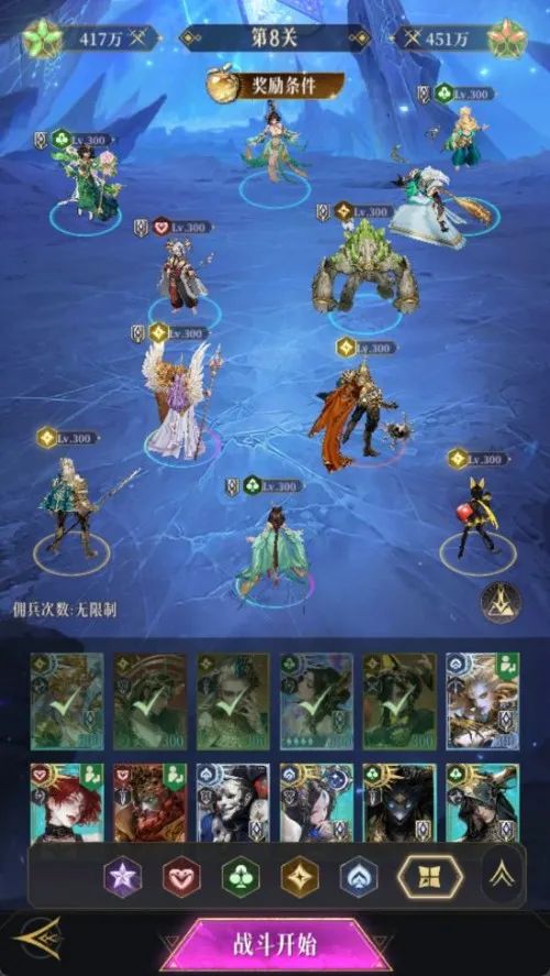 神明试炼中,所有神明的等级都会被拉到300,卡牌等阶与自身练度相同,所以卡池深度和自身的练度非常重要,建议每个阵营都练一张高等阶的卡。