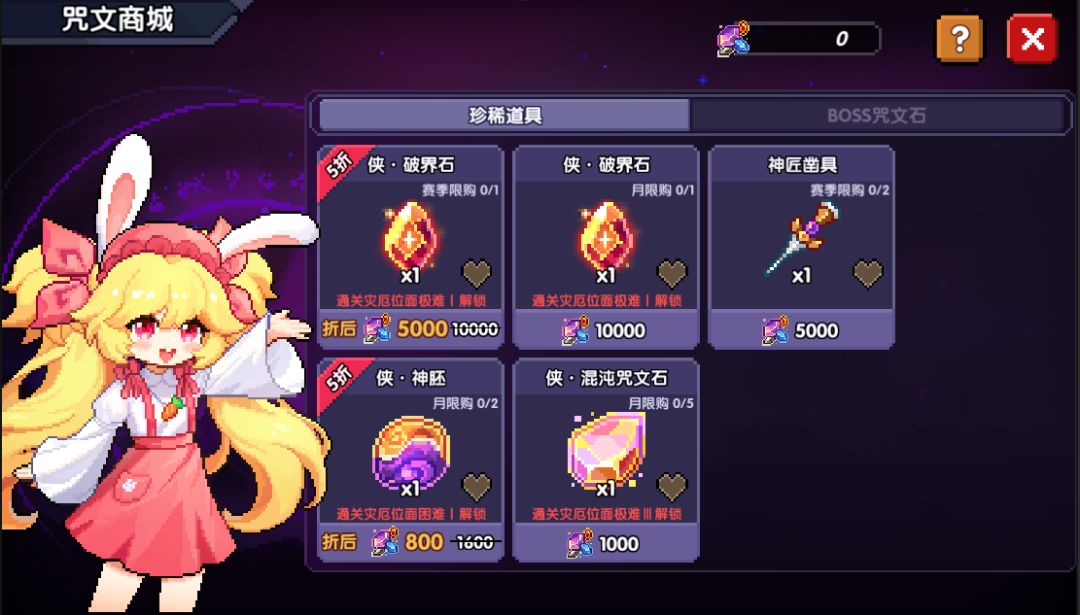 可使用“侠·原石碎屑”兑换侠·破界石、侠·神胚、首领咒文石等多种道具
