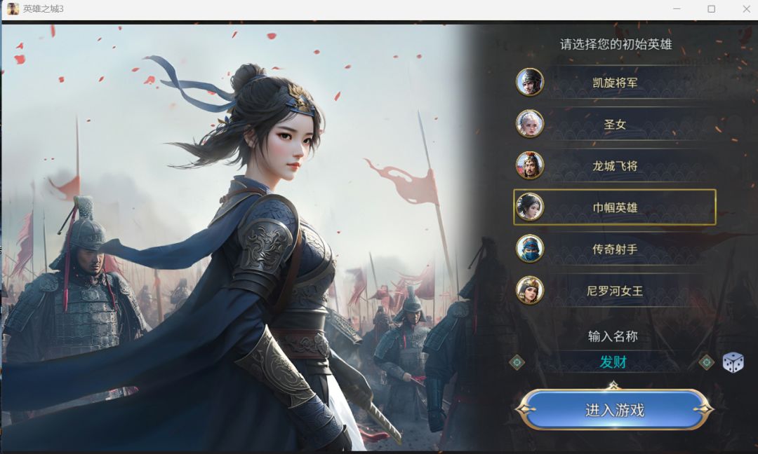 进入游戏后,先选择一个自己喜欢的英雄并取昵称,这对游戏实际玩法无影响,可根据个人喜好决定。
