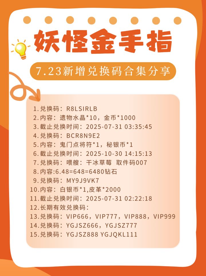 妖怪金手指 7.23新增兑换码汇总