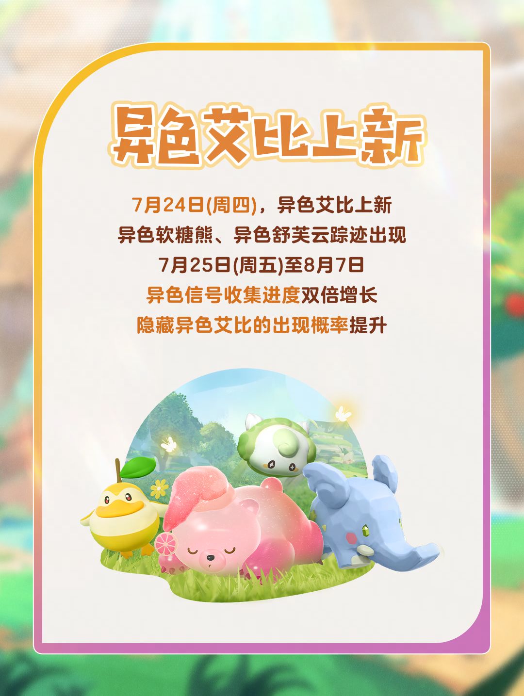 7月25日至至8月7日,隐藏异色艾比出现概率提升,