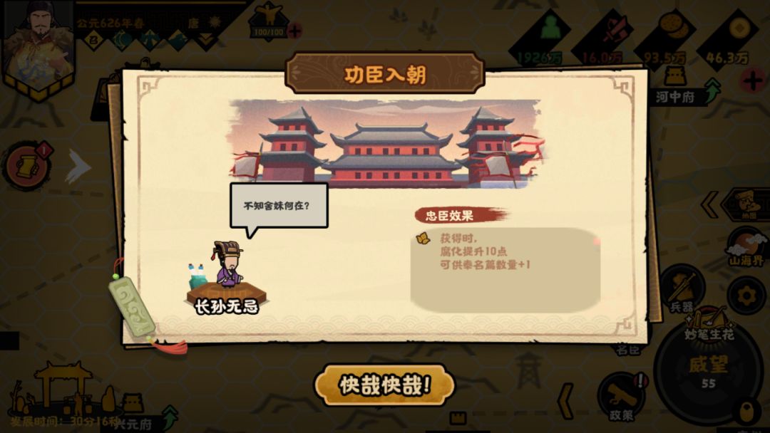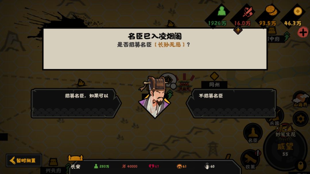 而后便会触发同名招募事件,就可以招募对应的名臣了