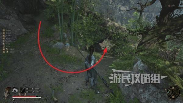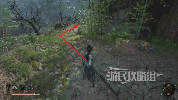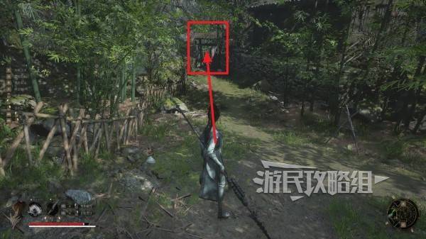走到底部后往左看可以看到一个院门,进入院门。注意门里有小怪阴人。