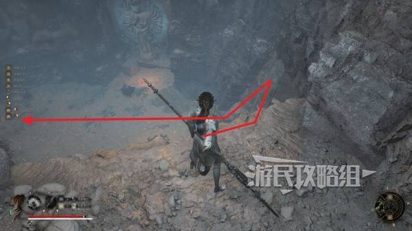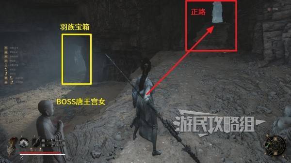一直上楼梯走到BOSS唐王宫女所在区域,走上层的台阶离开山洞。注意洞口左侧有个阴人小怪。