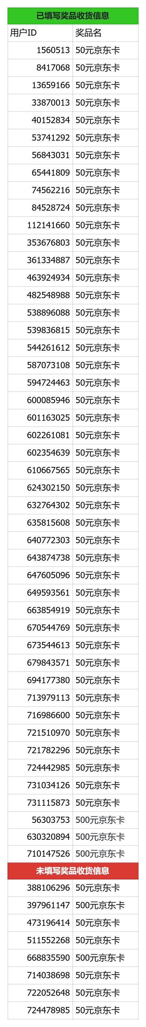 以下名单为本次活动中奖名单公示。还有8位中奖的主公未填写奖品收货信息,视为放弃本次奖励。