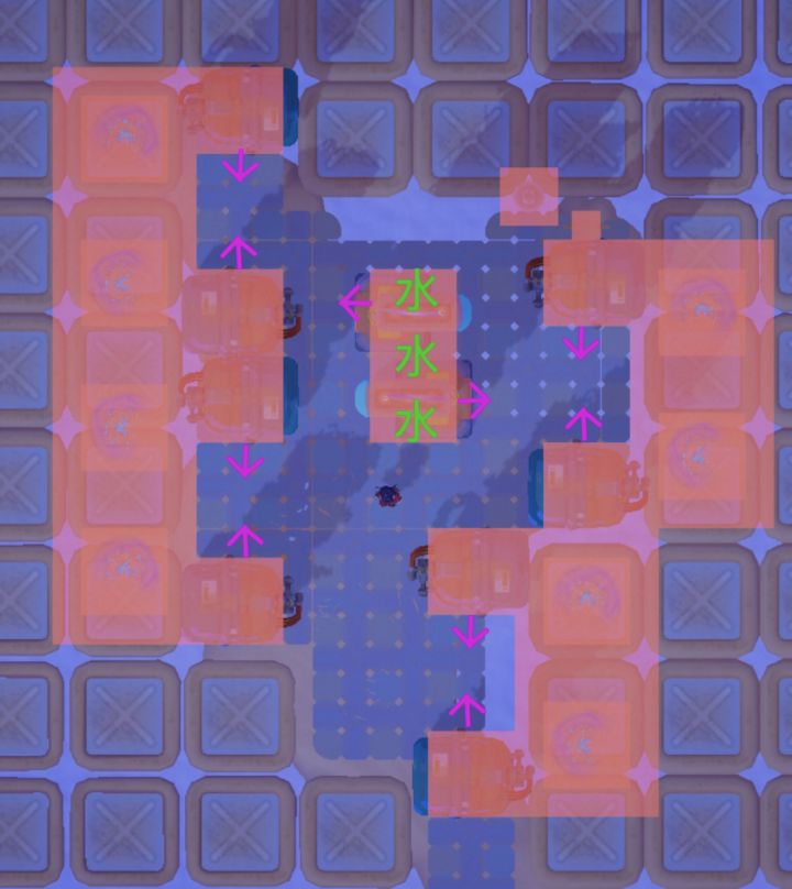 二: 紫色箭头是朝向,朝向很重要!!具体可以看月广的大佬的攻略或者我的视频攻略。