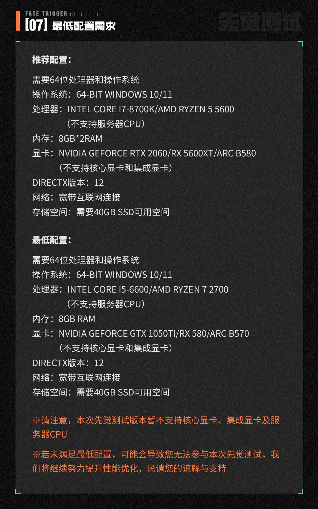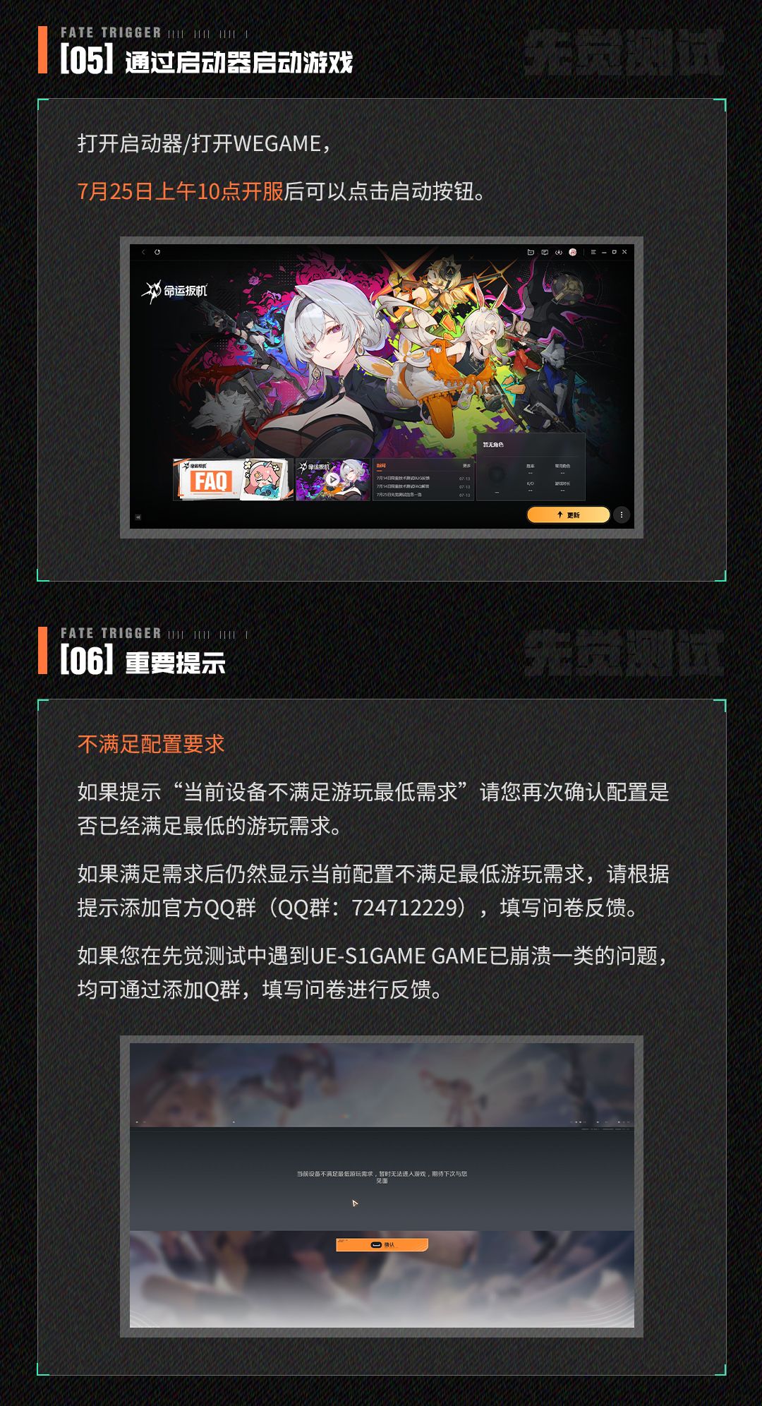 同时我们也为各位先觉者准备了测试配置要求指引以及预下载常见问题FAQ,帮助大家更快完成游戏预下载。