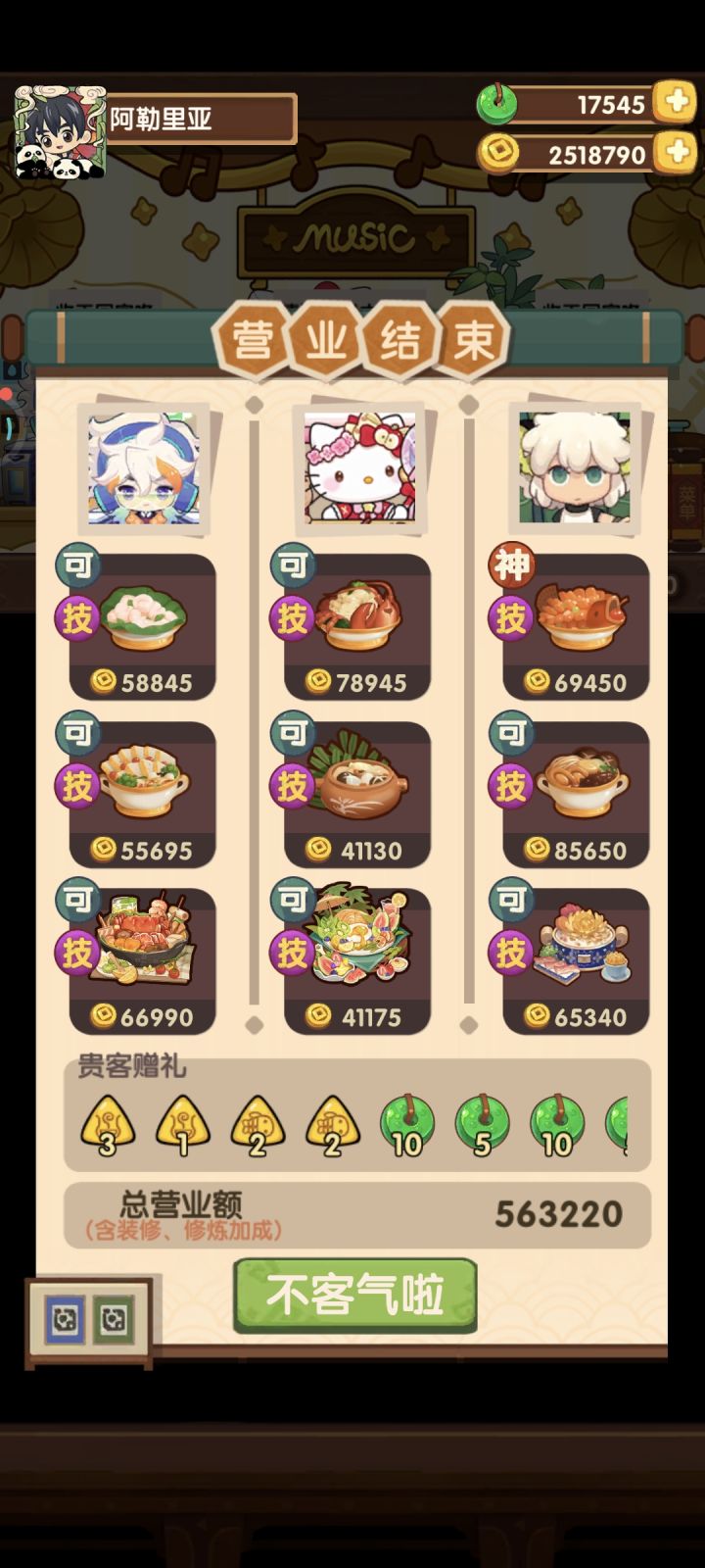 新池活动14天,第一天刷了些其他菜,之后每天刷7份什锦铜火锅,最后一天赶在23点多开业最后一锅,拉满贵客必来,图2图3就是最后一锅情况。