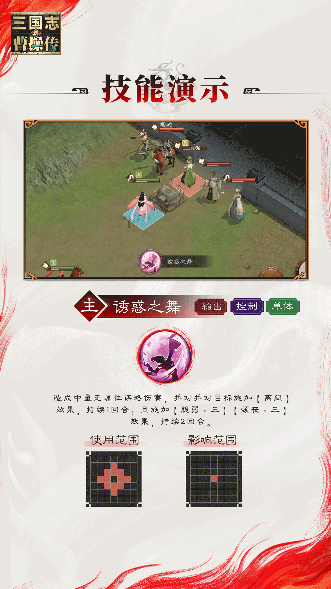 貂蝉在游戏内不仅有着独一无二的“再动”机制,能让友军在同一回合内再行动一次,天赋和怒气技能也可大幅度加强阵容打桩能力。