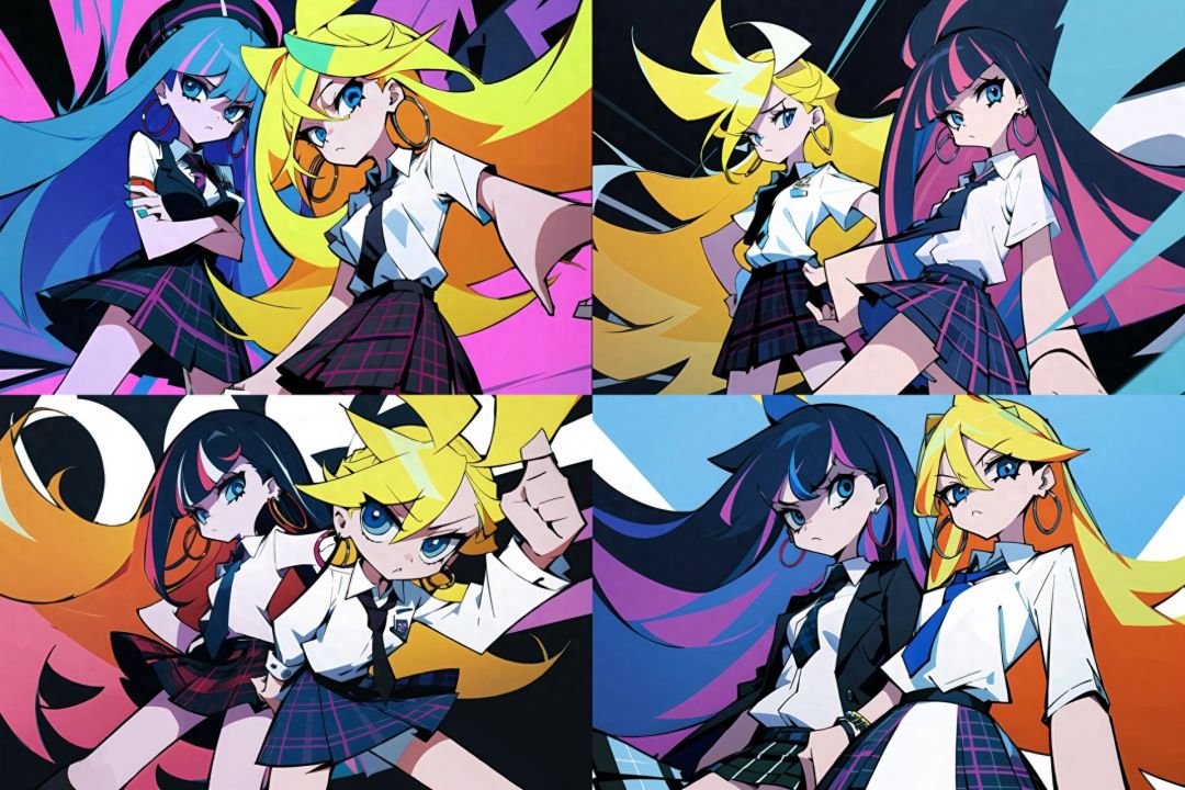 扳机社五周年贺图回到《吊带袜天使》这部作品本身,让我们把时间回到GAINAX时期,《天元突破》原班人马在今石洋之的核心团队带领下,投入到《吊带袜天使》的制作中,作品讲述了……你不需要知道作品的背景与设定,只需要知道这部作品里夹杂了大量私货的同时能让观众爽看就完事了,动画创新的使用以美漫画风为主,三种画风夹杂其中却不显混乱反而相辅相成,被网友们戏称为“美漫日漫奥特曼的结合”。