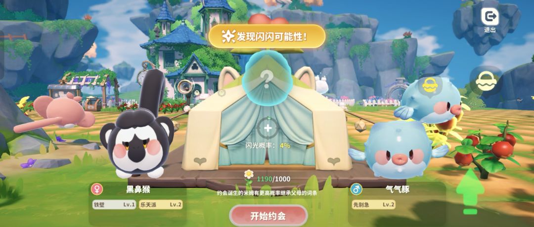 还有一种约会得到蛋叫做奇迹蛋,这种蛋可以孵化出闪闪米姆,在米姆约会中如果匹配出闪光品质,是会提示出来的。