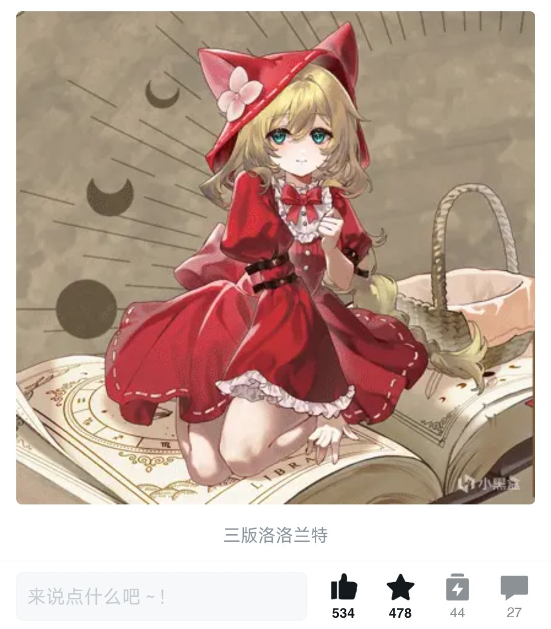 在今年4月,我在无聊刷黑盒时,偶然发现了一只野生的红帽黄毛小萝莉——这猫耳连帽衫、这哥特萝莉裙、这可爱又无辜的表情......谁看了不迷糊啊,当场就恨不得化身大灰狼把她吃掉(×)