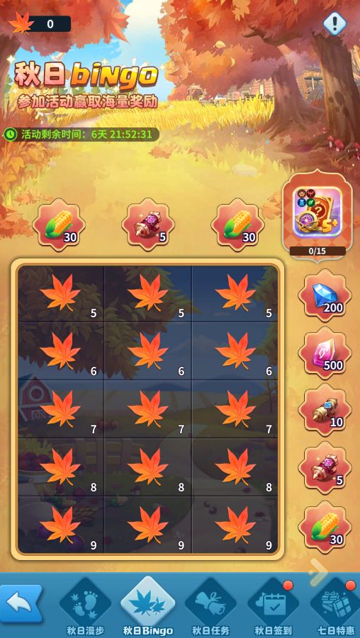 2、秋日bingo:活动期间,开放枫叶收集,消耗枫叶解锁Bingo可以获得丰厚奖励