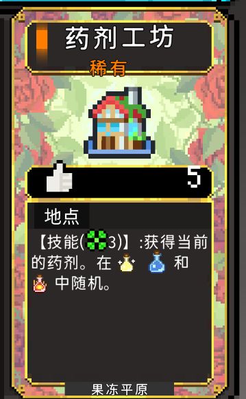 【凝胶工坊】改成【药剂工坊】,这是一个可以主动释放(需消耗幸运)来获得药剂的卡堆。