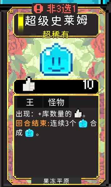 我们充分发扬了之前史莱姆【三合一】的特性,追加了【超级史莱姆】。并且超级史莱姆也能继续合成。