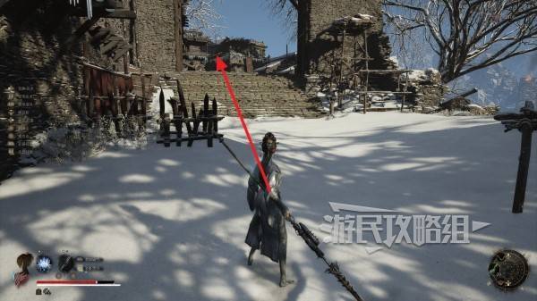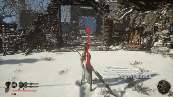 从【云顶城-映雪门】神龛出发,过桥进入雪堡。